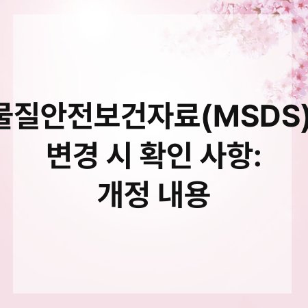 물질안전보건자료(MSDS), 변경 시 확인 사항: 개정 내용 2025년 09월 17일 작성자: master 물질안전보건자료(MSDS)는 화학물질을 안전하게 관리하기 위한 필수 문서입니다. 하지만 이 문서가 변경될 때마다 어떤 점을 확인해야 할까요? MSDS의 개정 내용은 안전과 직결되므로 정확히 이해하는 것이 중요합니다. 이번 글에서는 MSDS의 변경 시 확인 사항을 중심으로, 안전한 화학물질 관리에 필요한 정보를 살펴보겠습니다. 끝까지...