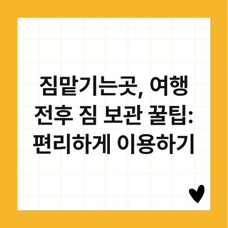 짐맡기는곳, 여행 전후 짐 보관 꿀팁: 편리하게 이용하기 2025년 09월 18일 작성자: master 여행을 떠나기 전, 짐을 어떻게 관리할지 고민해본 적 있으신가요? 여행 전후에 짐 보관이 필요할 때, 짐맡기는곳을 활용하면 매우 편리합니다. 이 글에서는 짐 보관의 꿀팁을 소개하며, 여행을 더 즐겁고 가볍게 만들어줄 방법을 안내하겠습니다. 짐을 맡길 수 있는 방법과 장소를 잘 알고...