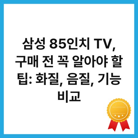 삼성 85인치 TV, 구매 전 꼭 알아야 할 팁: 화질, 음질, 기능 비교 2025년 09월 18일 작성자: master 대형 TV를 구매할 때는 여러 가지 요소를 고려해야 합니다. 특히 삼성 85인치 TV는 그 크기와 화질, 음질 등에서 뛰어난 성능을 자랑합니다. 하지만 구매 전 꼭 알아야 할 팁들이 있습니다. 오늘은 화질, 음질, 기능 비교를 통해 삼성 85인치 TV의 매력을 살펴보겠습니다....